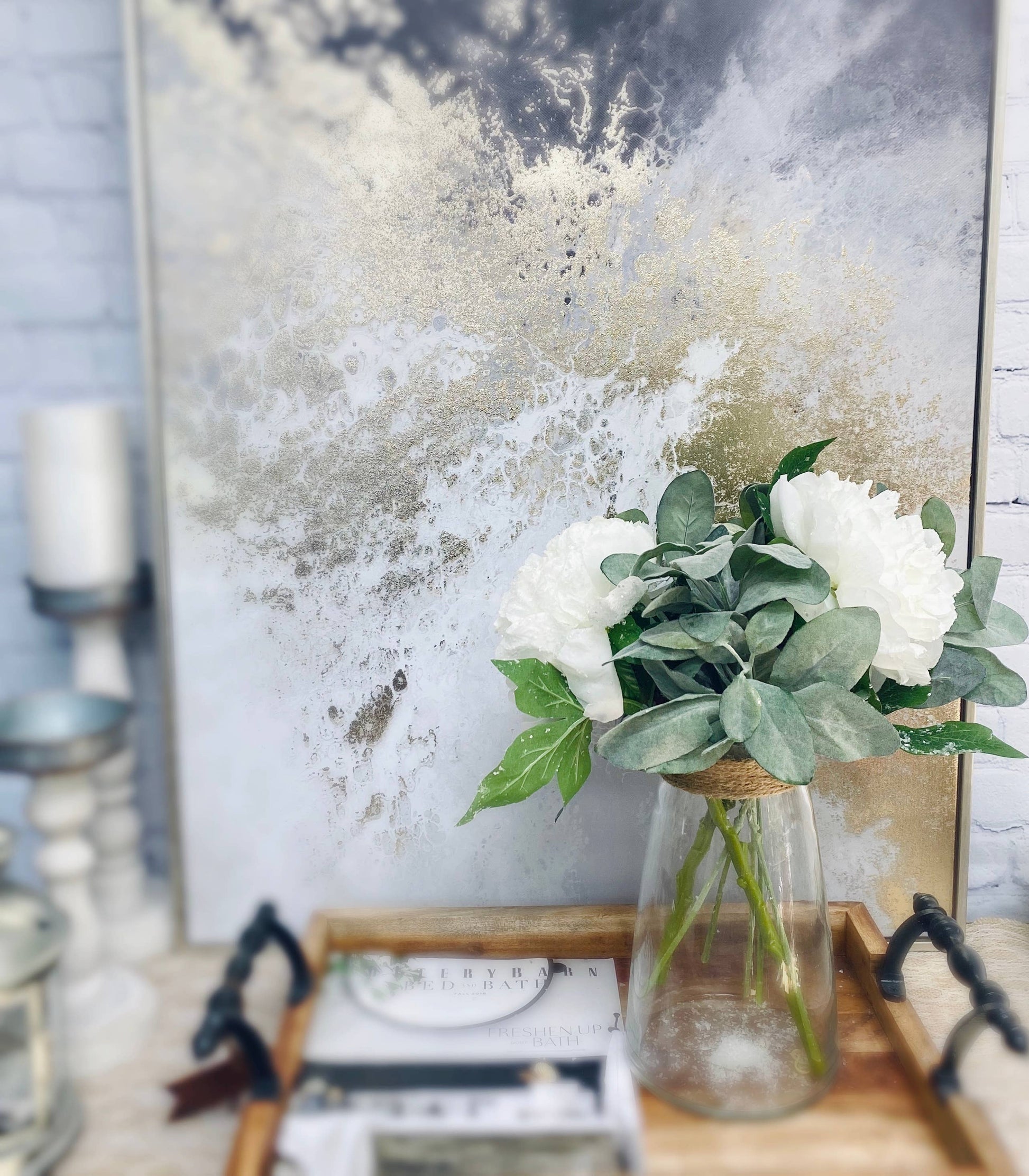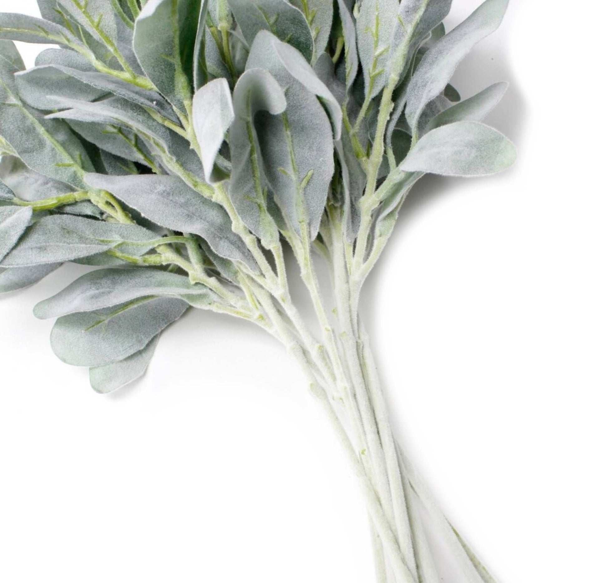 Greenery is a great way to fill out a wedding bouquet or centerpiece in a natural-looking way, and this flocked lamb's ear is no exception. Leaves are flocked for a realistic, almost velvety feel. The flocking creates a soft, grey-green look.