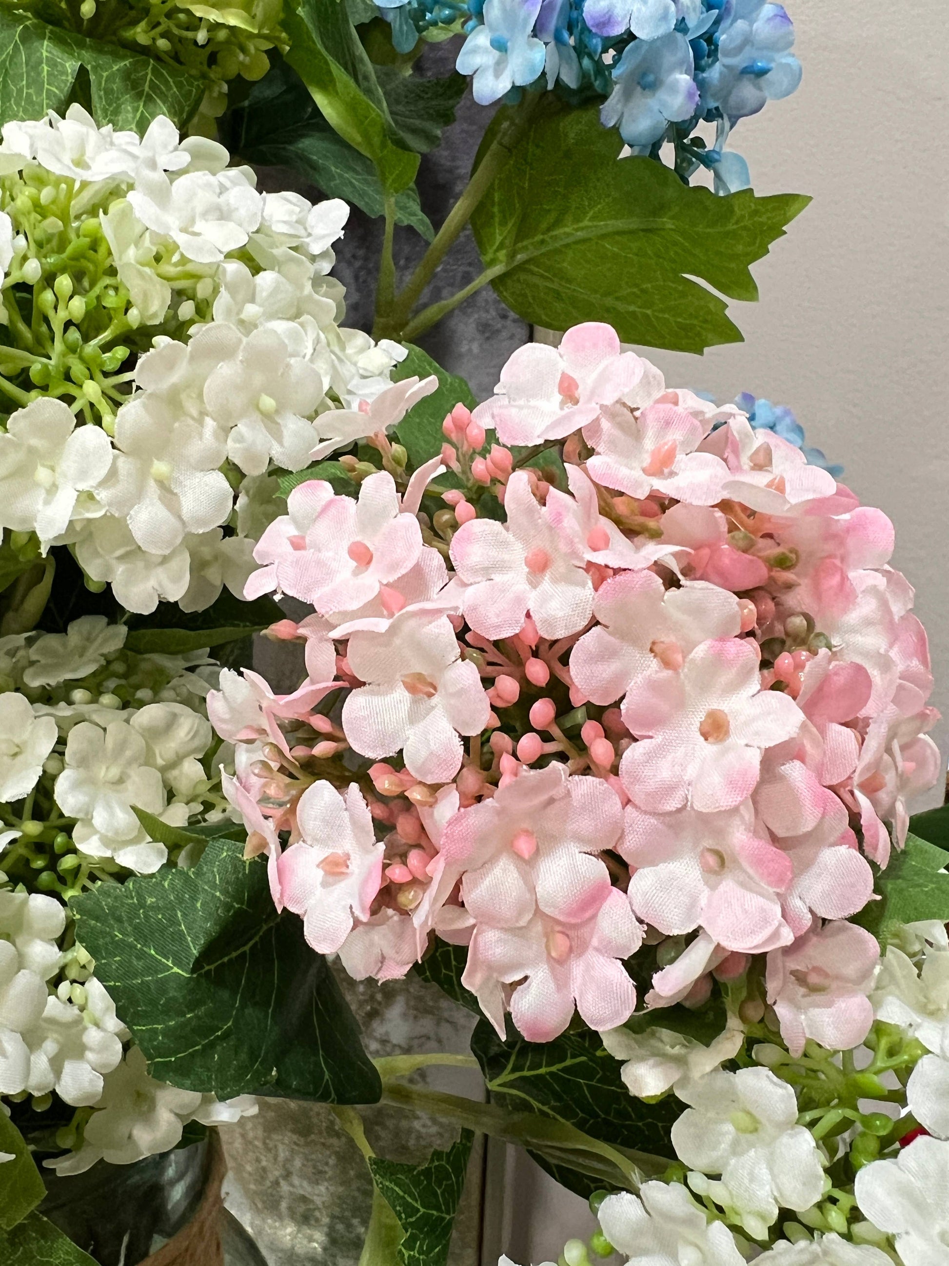 27"-3 Blooms-faux Snowball hydrangea spray: Pink