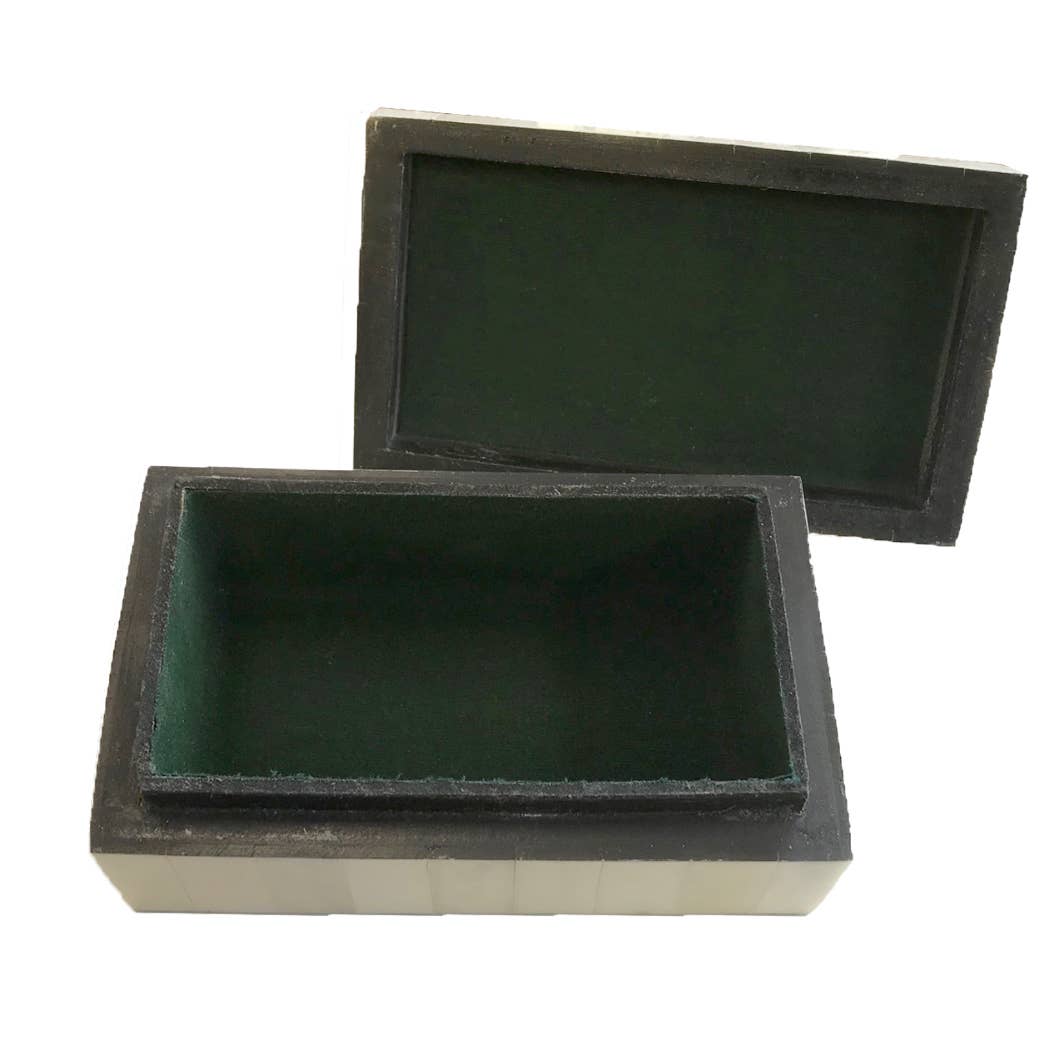 Begun by sailors working on whaling ships out of New England, scrimshaw may be the only art form that originated in America. Our scrimshaw is created by engraving varying designs on ox bone. Sealed with bone powder and epoxy, lacquer-coated and hand-polished. Perfect for holding jewelry and keepsakes. This is NOT a resin product.