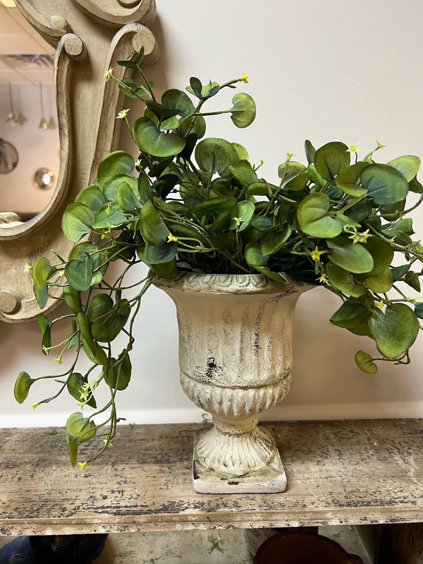 Introduce a touch of vintage charm to your indoor or outdoor garden with the Cement Urn Planter from Vagabond Vintage. Crafted from sturdy cement, this planter exhibits a vintage aesthetic, perfect for housing your favorite plants. Its size, 7.5" in diameter and 9.5" in height, makes it an ideal choice for medium to large-sized plants.
