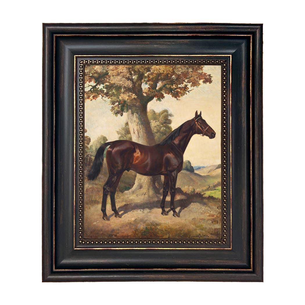 Accurate reproduction of the original oil painting by English painter James Lynwood Palmer (1868-1941), this image is printed on canvas, mounted to a board and treated with an historic looking varnish. Framed in a black resin frame with copper distressing and bead accent, the back is finished with 100% recycled craft paper and a sawtooth hook. Made in the USA.