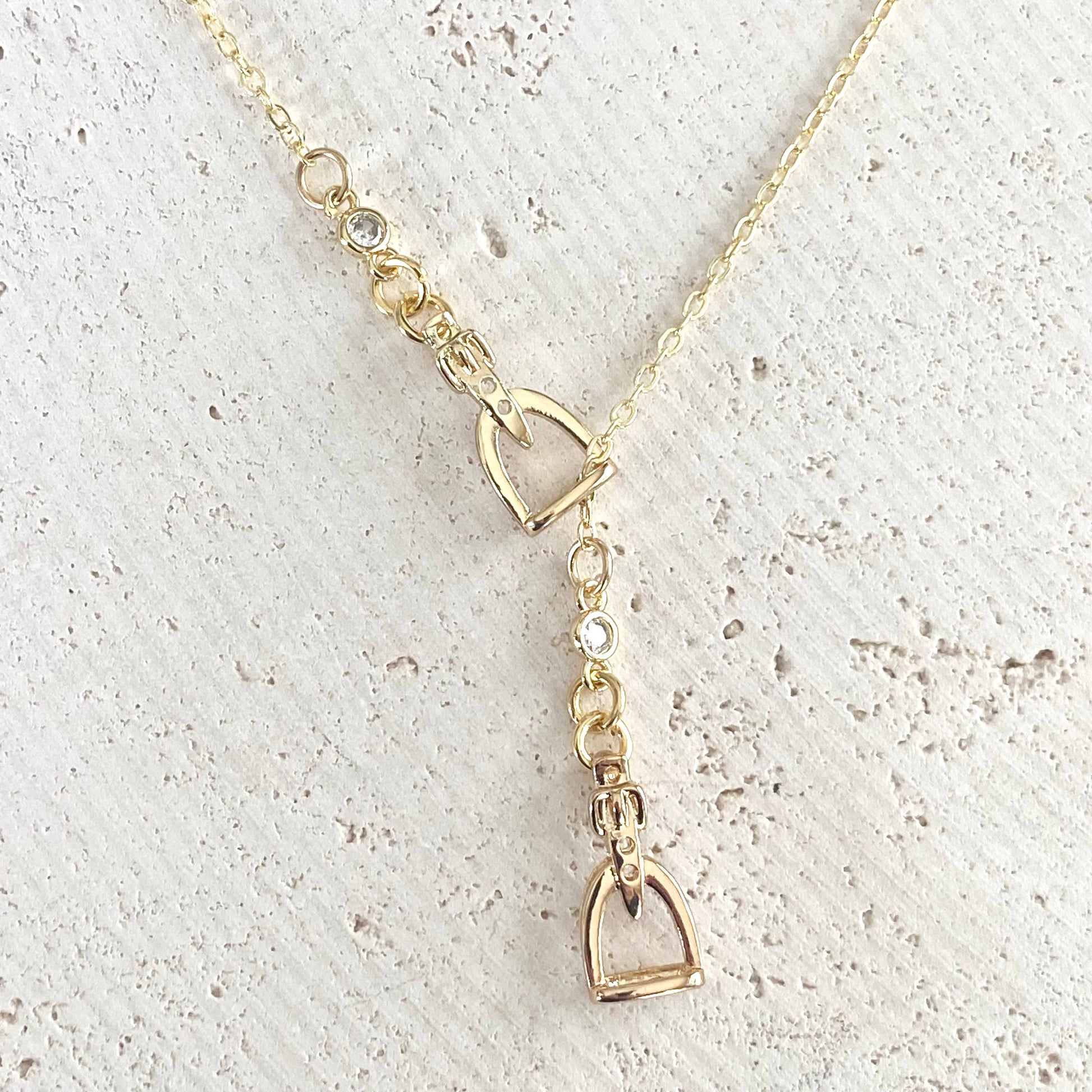 Equestrian Jewelry Y style Horse Bit Stirrup Necklace ~ Gold