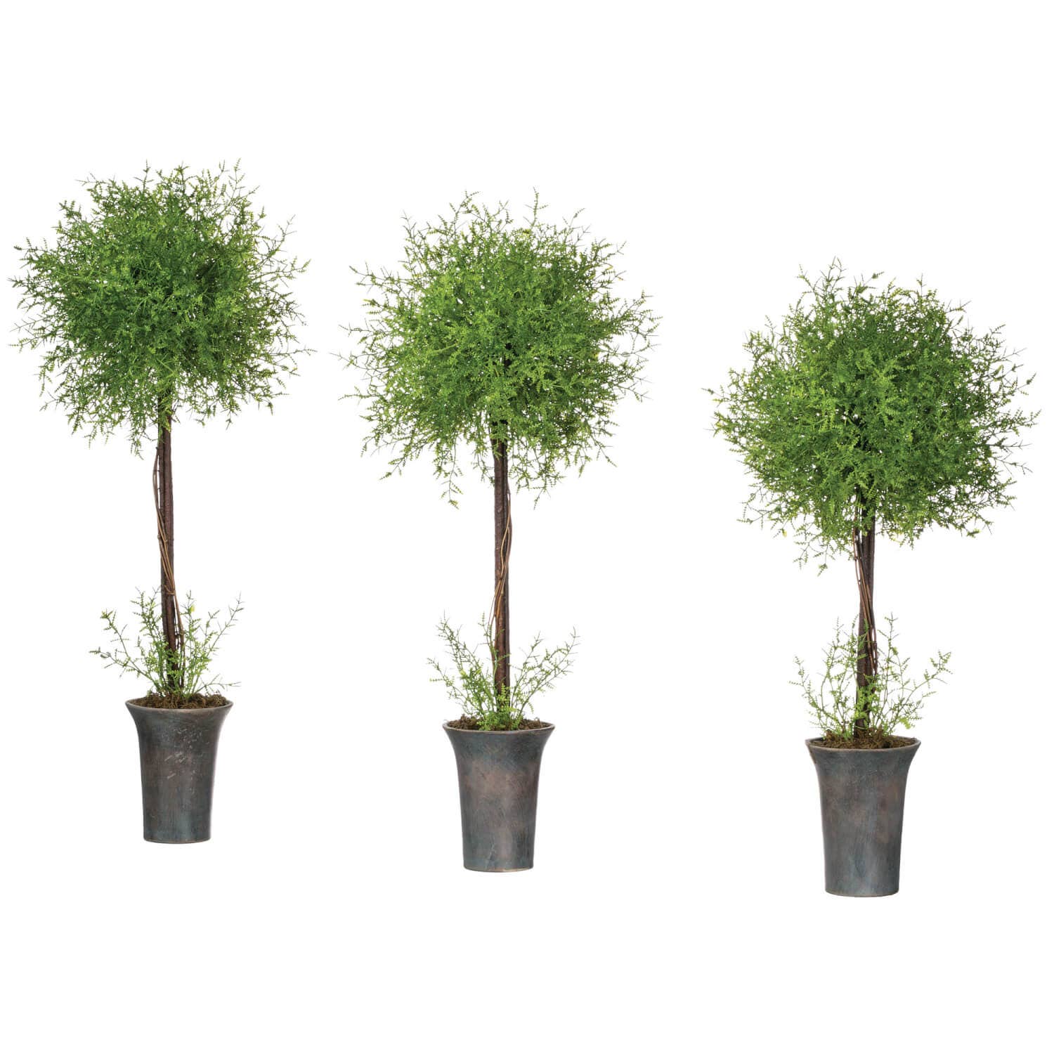 The perfect accompaniment to our feather fern orbs, this three-piece set of topiaries will definitely add that extra bit of flair. Complete with their handsome pots, this group proves that three is NOT a crowd!