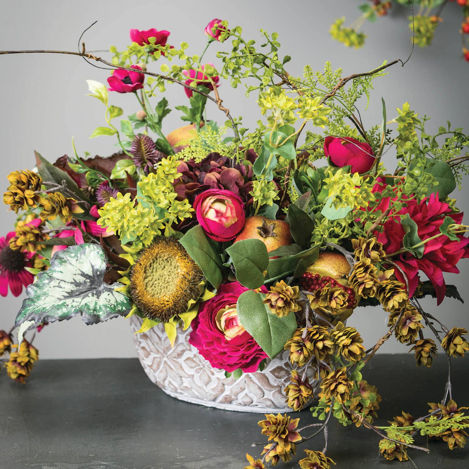 Many times, you're looking for just a simple branch or green to add to your arrangement to finish off the look. This piece will work wonders filling out any bouquet and it will exude just the right amount of natural adornment. -Dimensions: 12"L x12"W x40" -Weight: 6.80oz -Color: Green -Material: Plastic