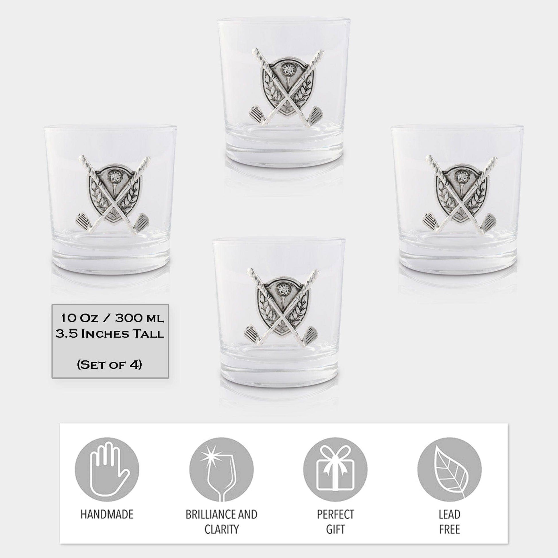 Introducing the Bar Glasses Set of 4 with Metal Golf Ball attached to the front - a perfect blend of sporty charm and timeless elegance for your home bar, entertainment space, or glassware collection. These unique glasses showcase a beautifully crafted Metal Golf Ball, adding a touch of golf-inspired style to every sip. Each glass in this set of four features a high-quality metal golf ball, meticulously crafted and securely attached to the front of the glass. This creative design not only enhances the visual appeal of your drinkware collection but also serves as a delightful conversation piece during gatherings or quiet evenings at home.