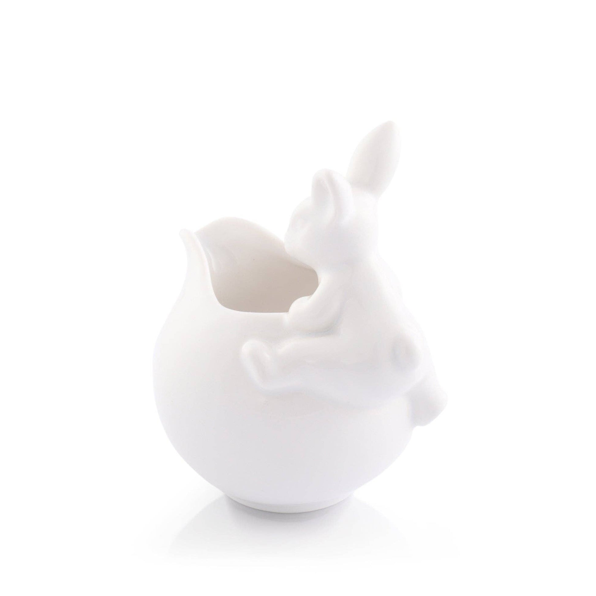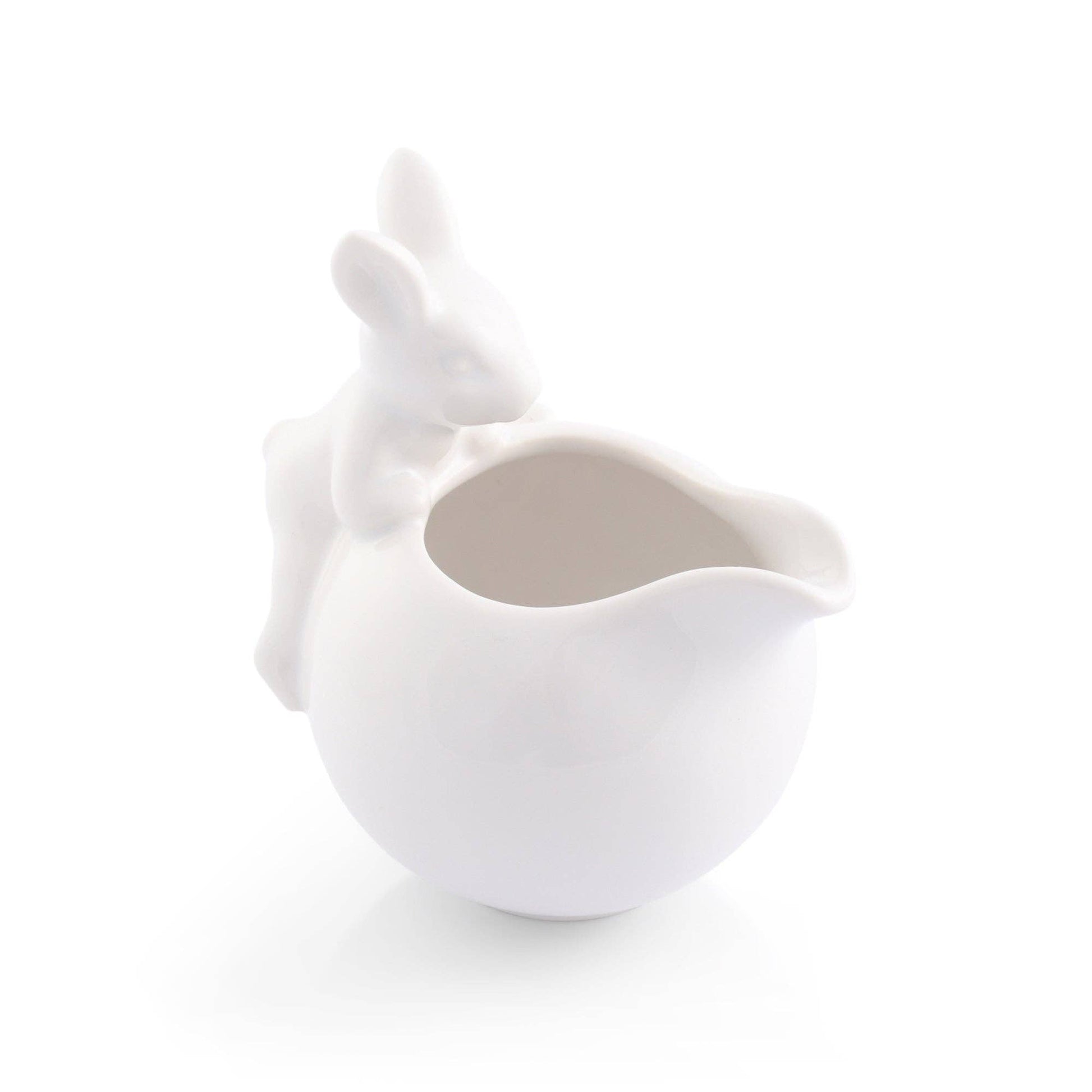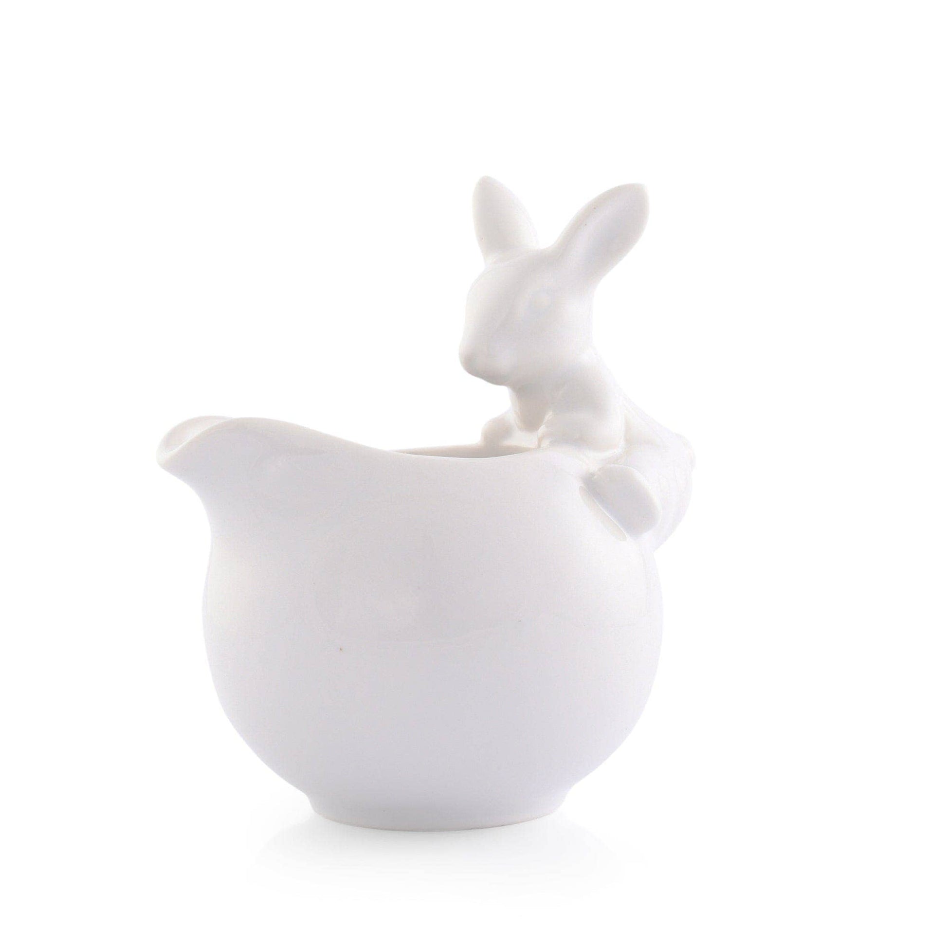 Introducing our delightful White Stoneware Climbing Bunny Creamer, a charming and functional addition to your dining table or kitchen countertop. This captivating creamer adds a touch of whimsy to your tea or coffee time, making it an eye-catching and practical accessory for your home. Crafted from high-quality white stoneware, the creamer is durable, easy to clean, and features a smooth, glossy finish. The crisp, clean white color of the stoneware complements a variety of table settings, effortlessly blending in with your existing décor. The star of the show is the playful climbing bunny that adorns the side of the creamer, acting as a unique and creative handle.