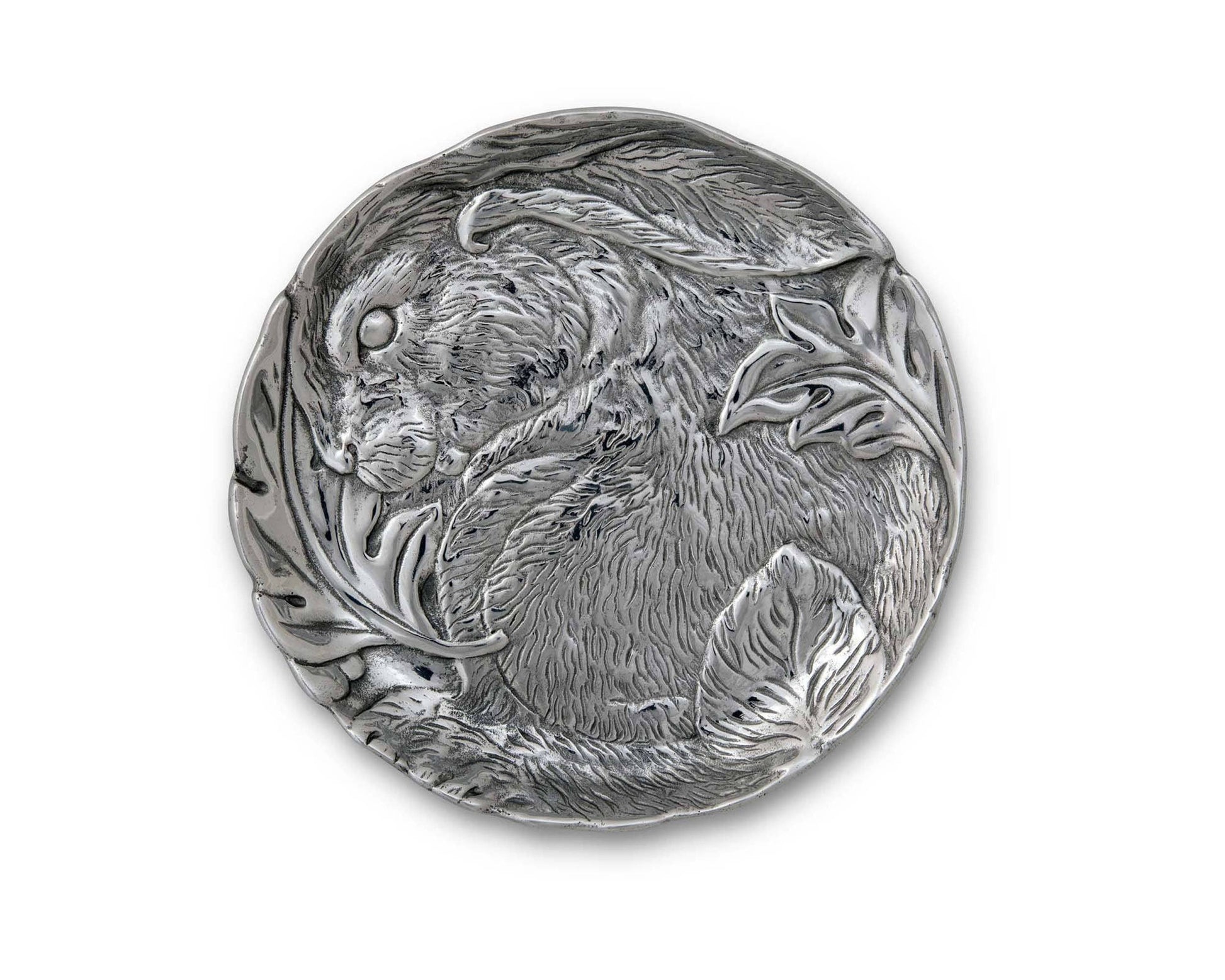 Everyone will hop on over for some fun when you bring out this classic Arthur Court Rabbit serving plate. A charming rabbit in a vintage style bas-relief complete with leaves and grasses embellishes our lustrous aluminum alloy serving plate. A must have for Easter entertaining, this plate adds style and grace to any springtime celebration. Gift to your favorite bunny collector, they will cherish the plate forever. Size: 8"L x 8"W Care: Hand-wash only with warm water and mild, non acidic soap and dry immediately.